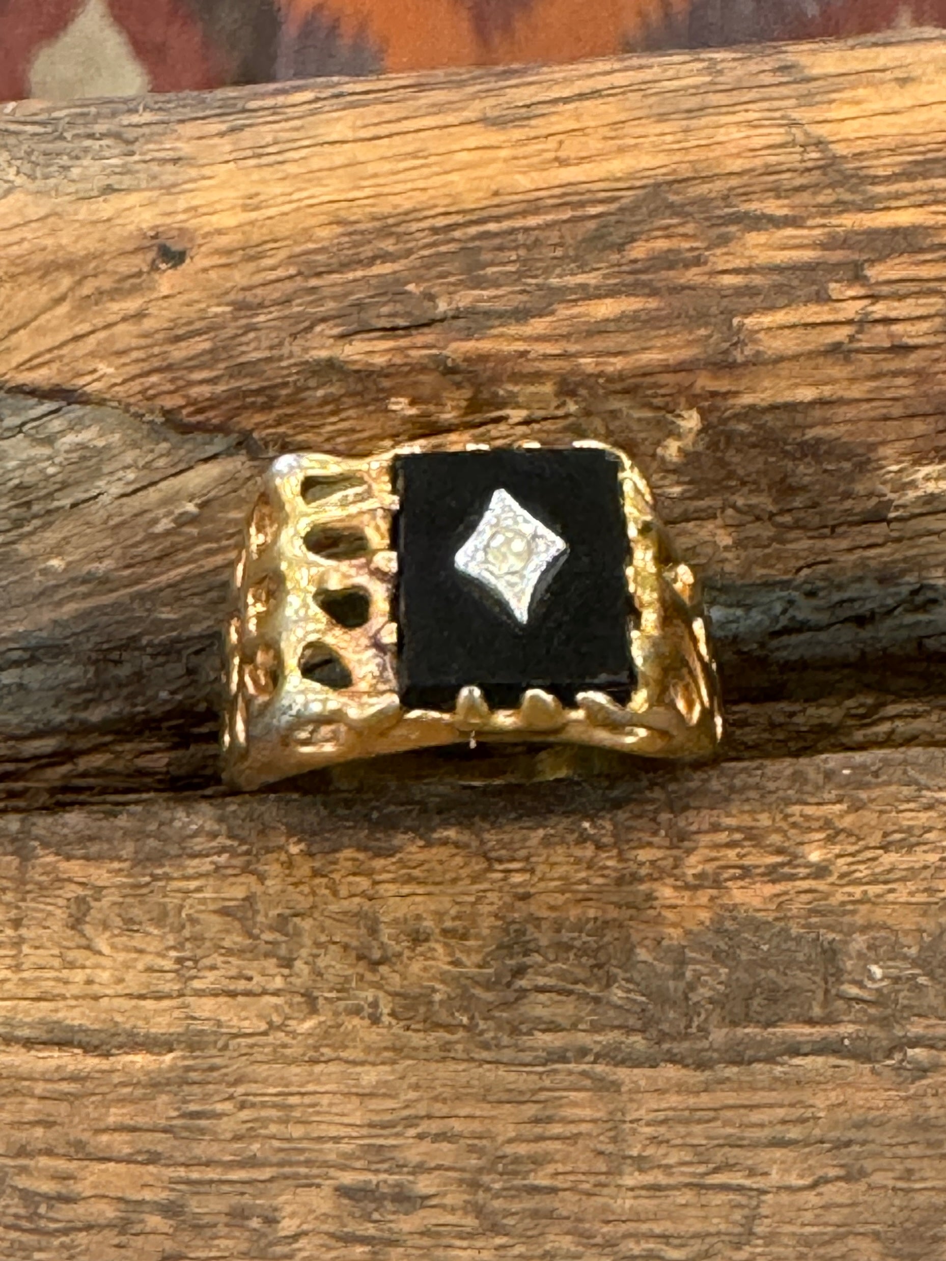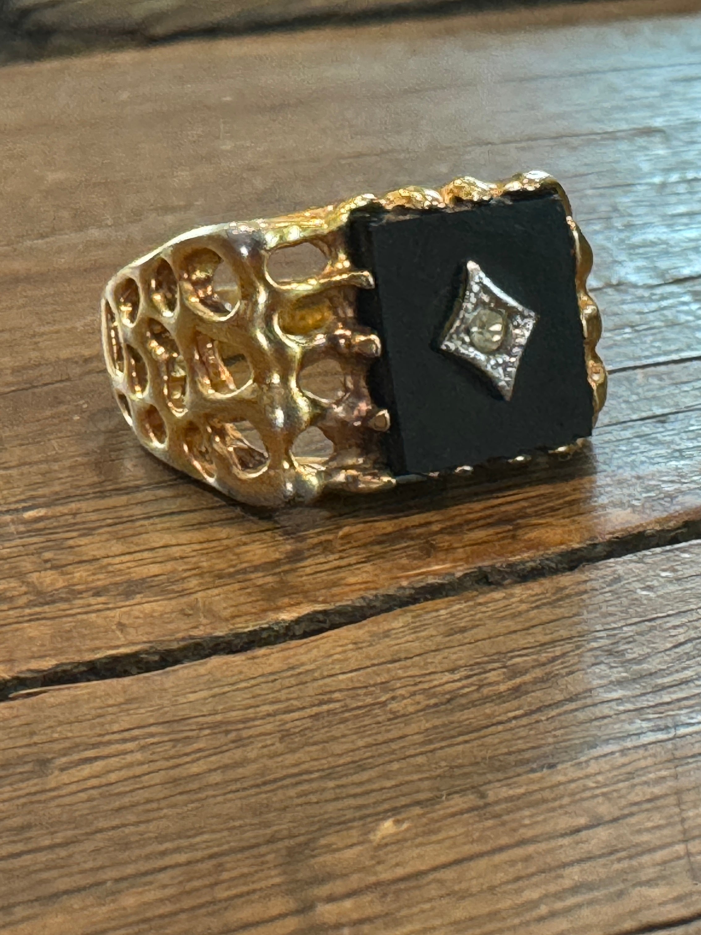 18k HGE Onyx Rhinestone Heavy Brutalist Electroplate Ring
