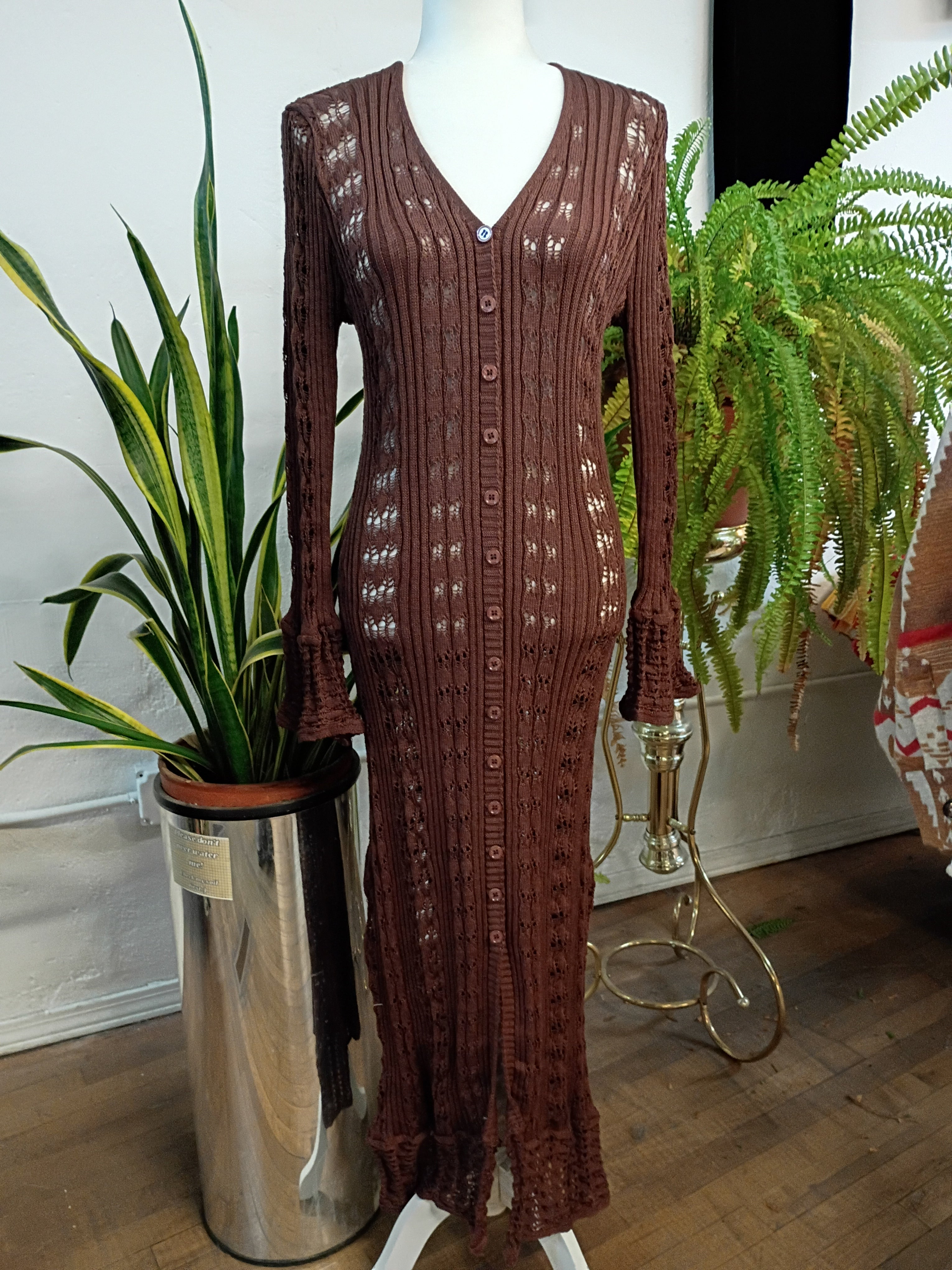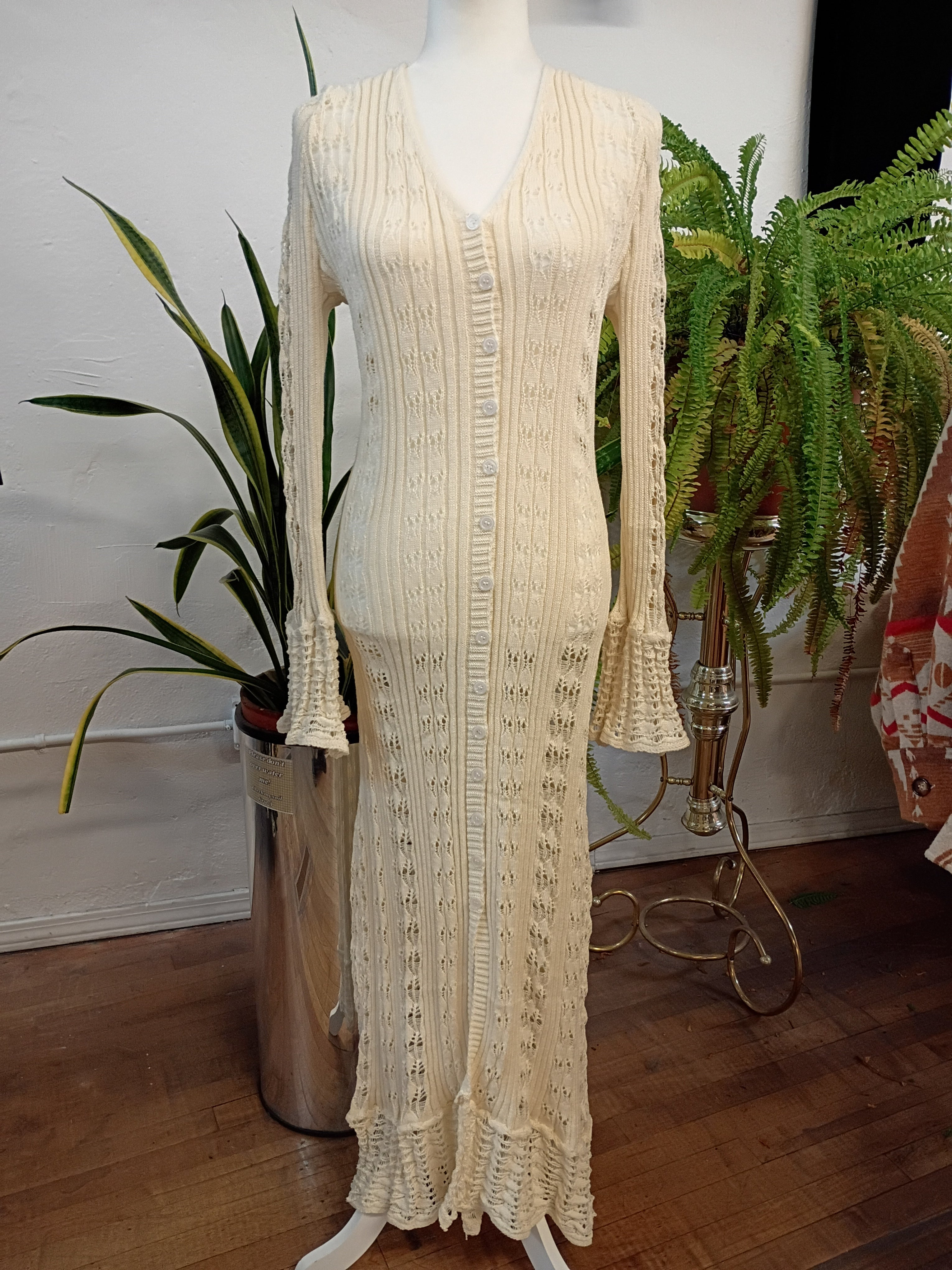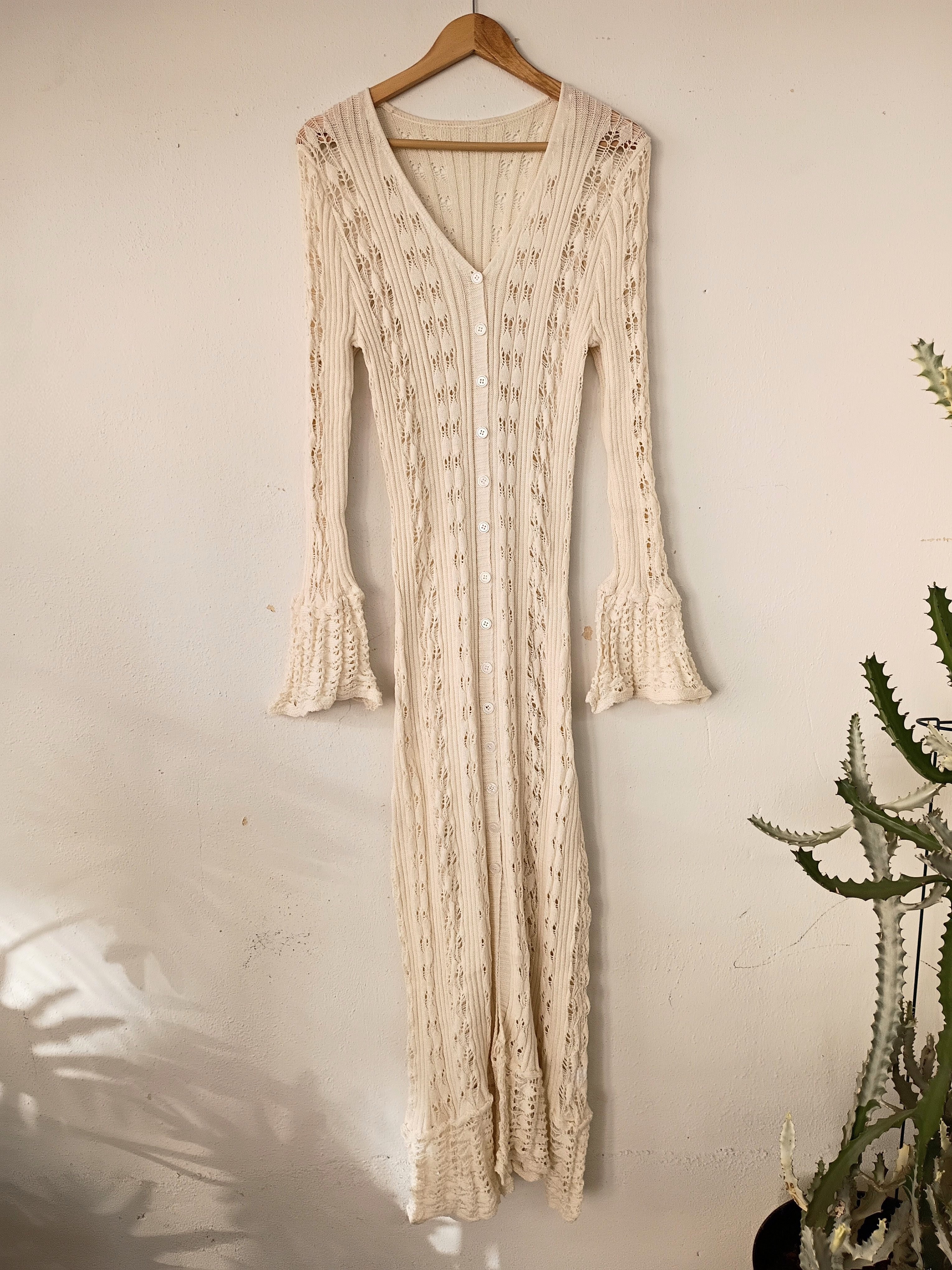 Bell Sleeve Crochet Maxi Cardigan