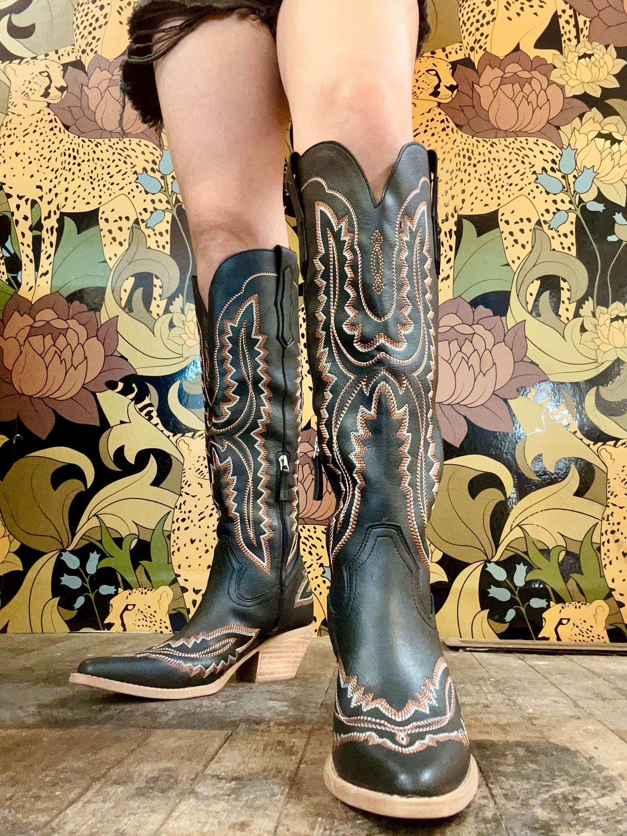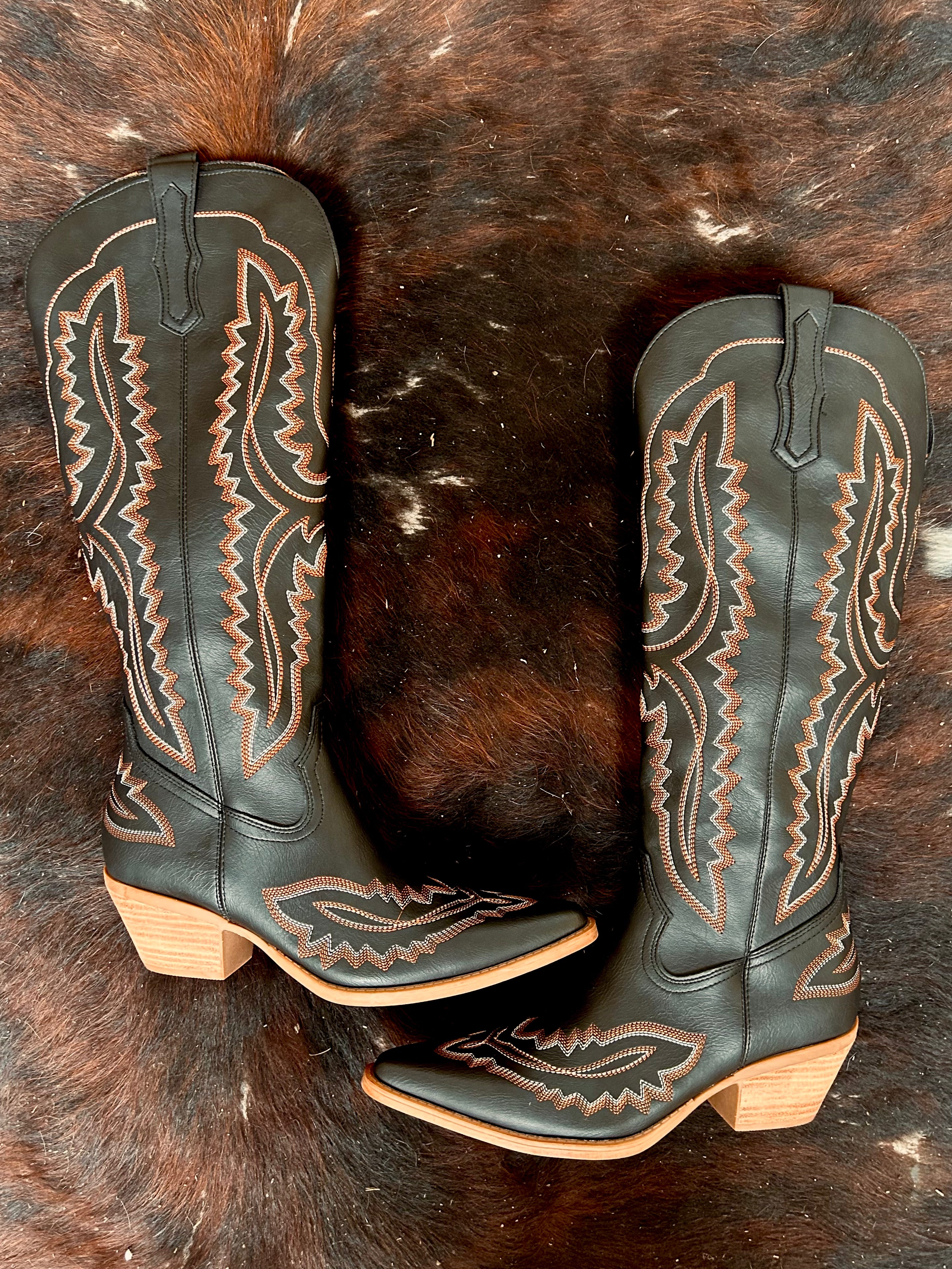 Tess Black Knee High Boots