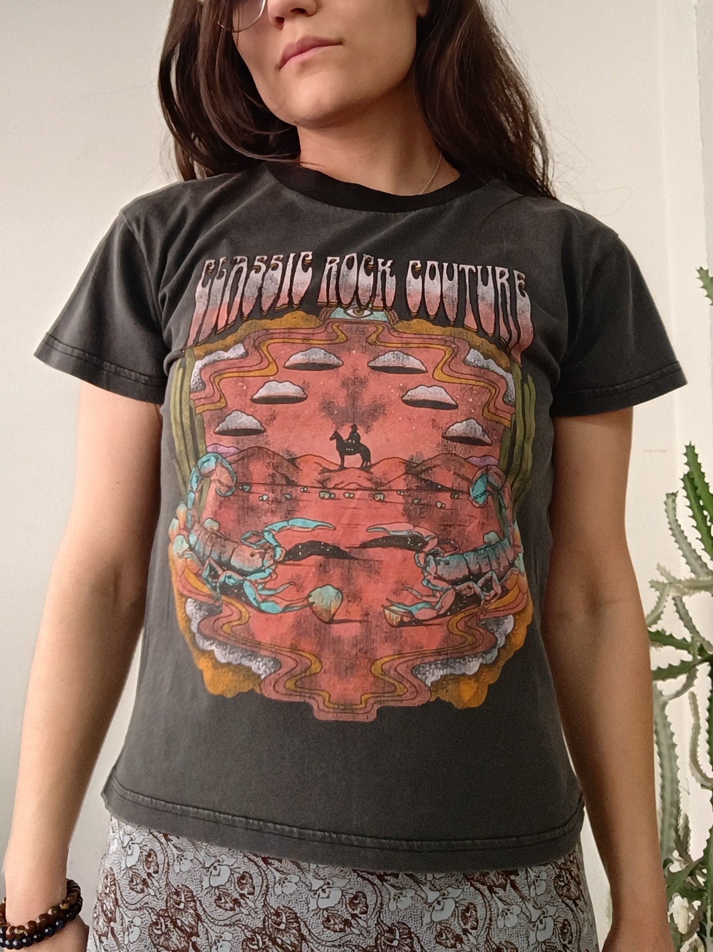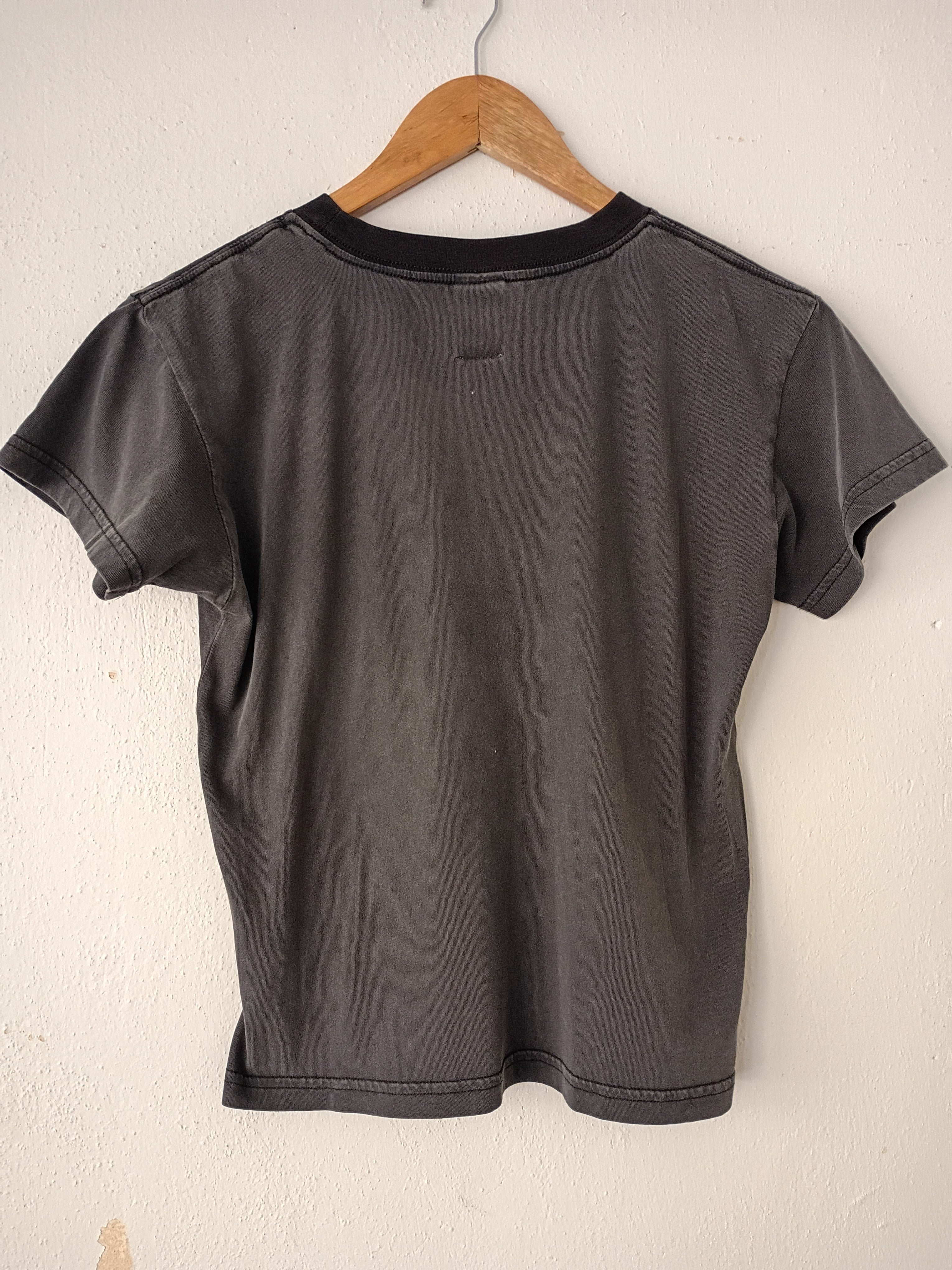 We’ve been working for so long to get the perfectly soft and distressed faded black material for this T-shirt and there’s so much intention that has gone into the design to make it just like your favorite vintage tee. It is perfectly faded, but still maintaining the black stitching and collar just like many vintage tees do.