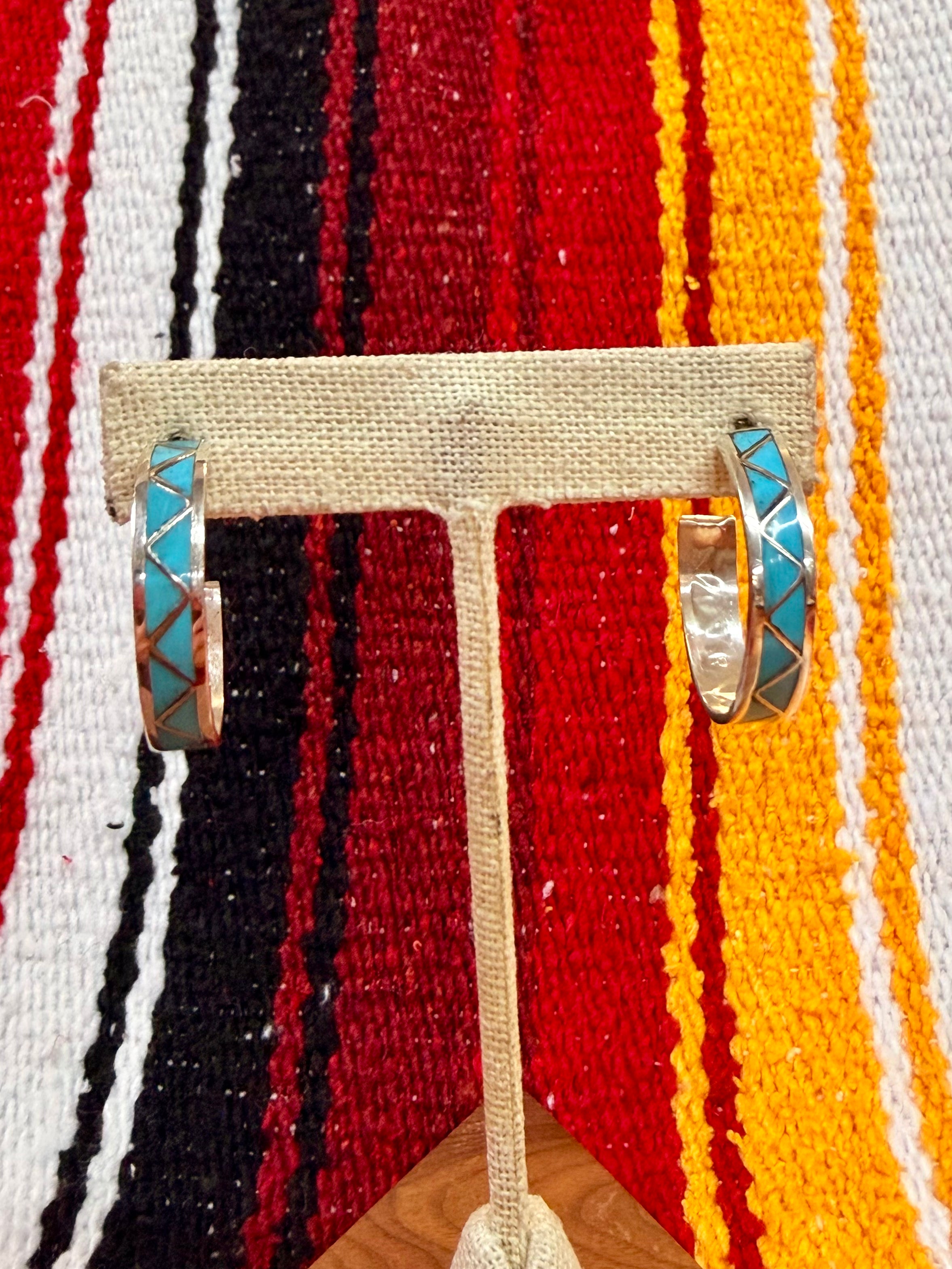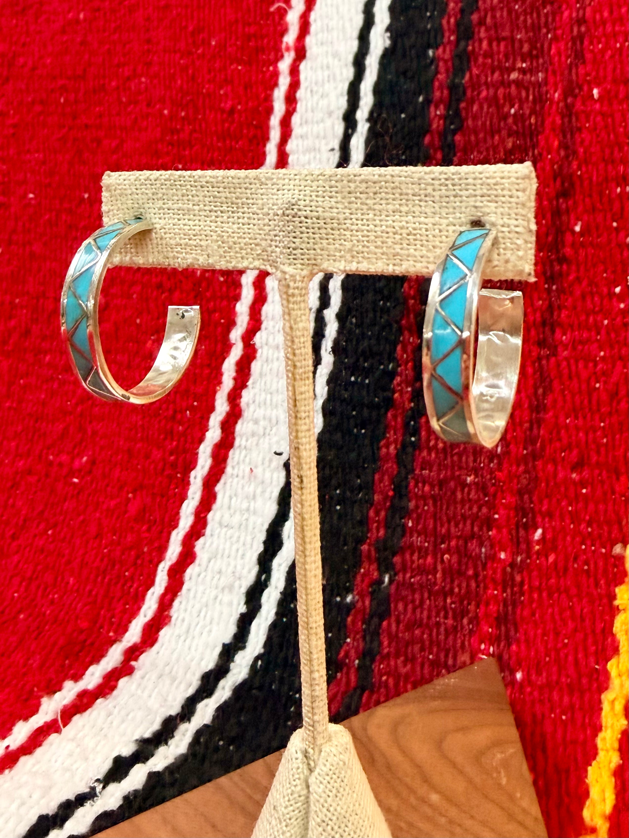 Sterling Silver Turquoise Inlay Hoops