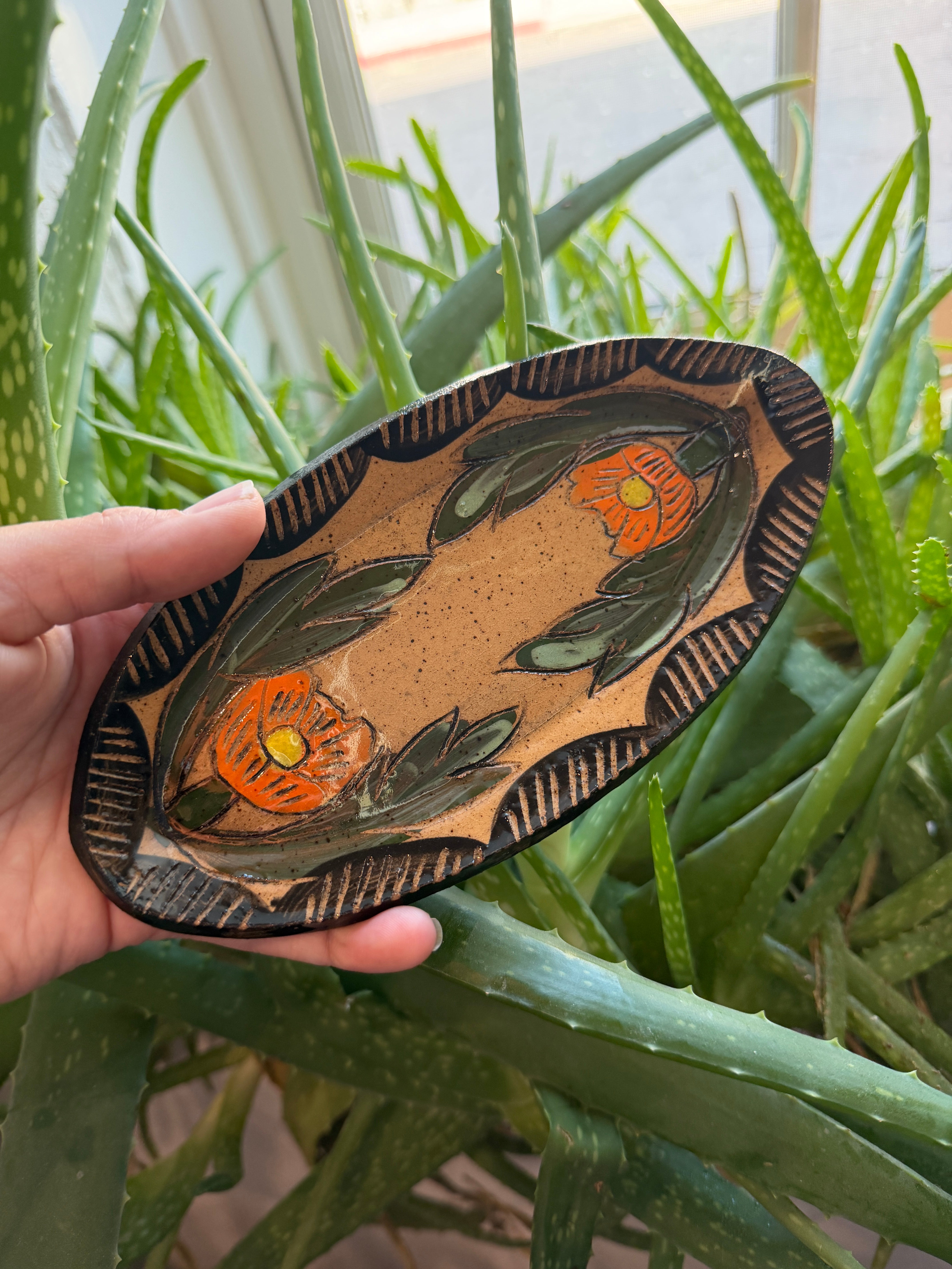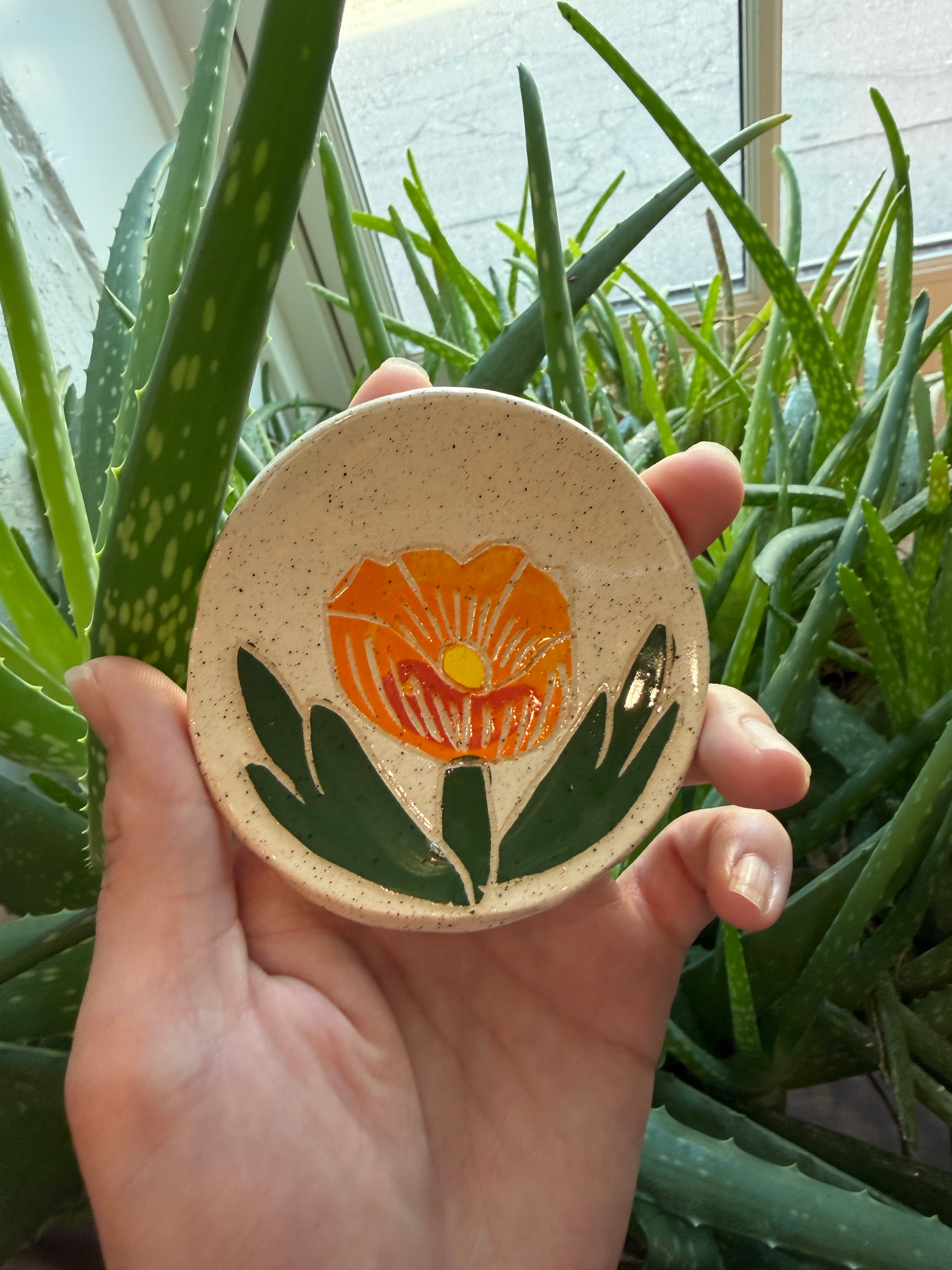 Globe Mallow Sgraffito Tea Rest 3" Dish