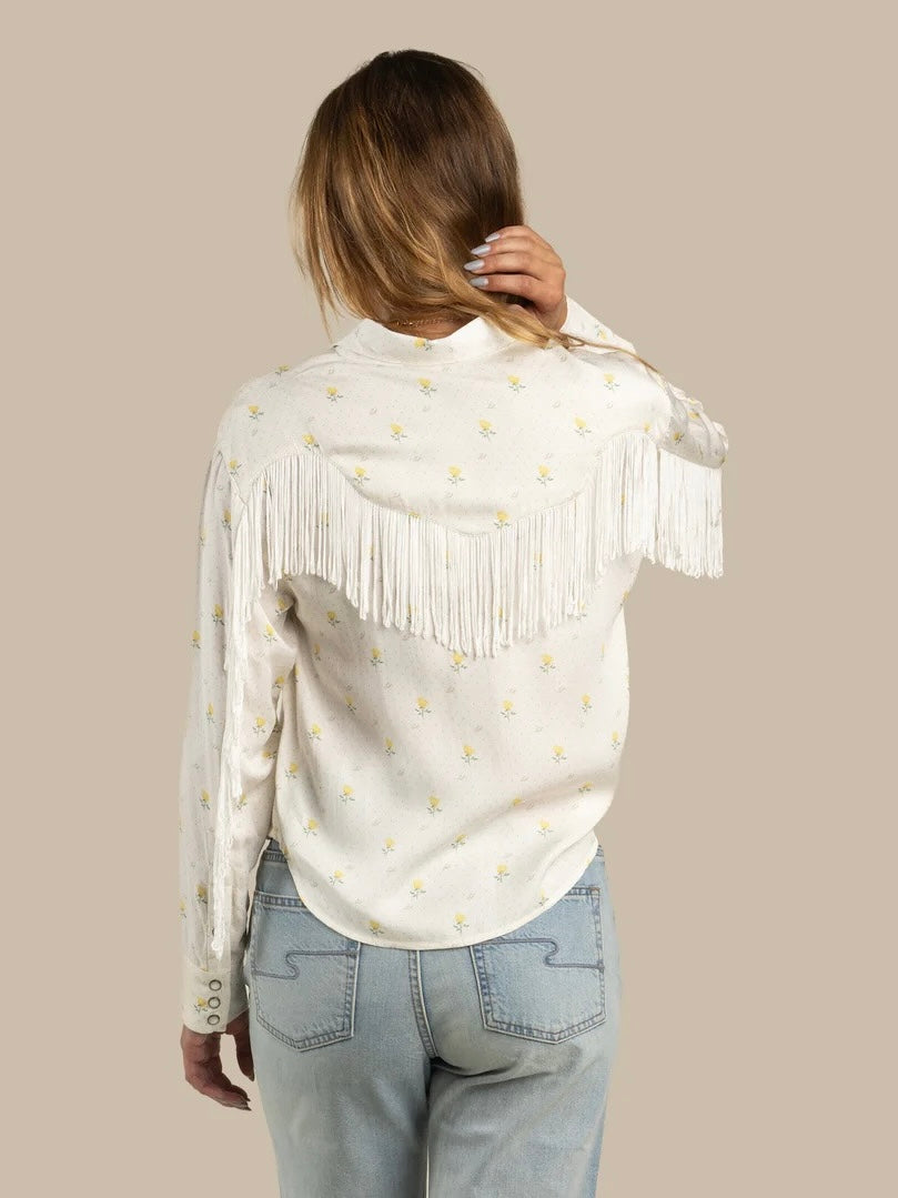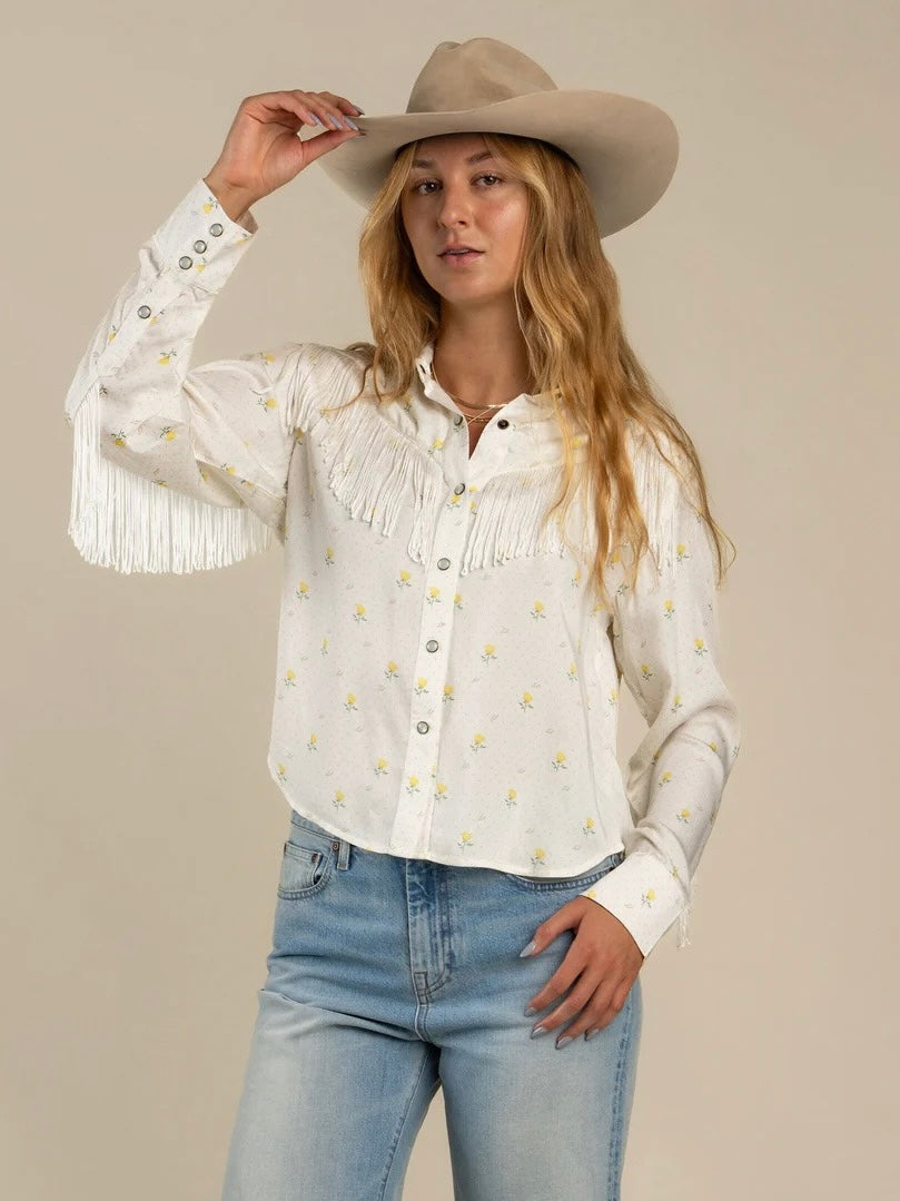 It’s all about the fringe, amiga! If you dare to rock this one, you’ll be the talk of the night without a doubt. Tuck it in or wear it loose. Either way you’ll find a flattering fit, silky soft fabric, and western details worth bragging about. June’s ready for the rodeo, Round Top, or a romantic evening out.